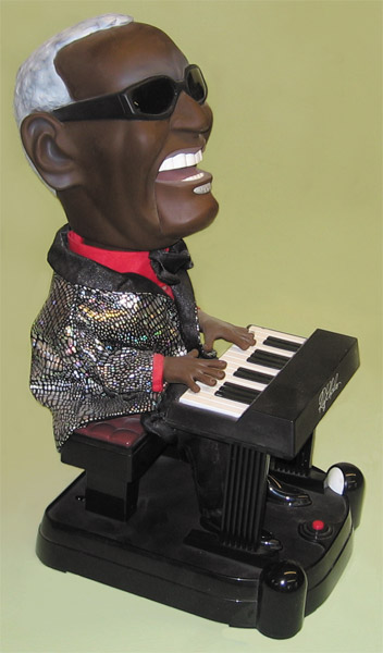 Freehand airbrush painting directly on plastic model head Little Ray Ray Charles Animatronic Doll by Pro Source, Hong Kong Industrial design by Beyond Design, Chicago and its strategic partner, Design Integrity, Chicago