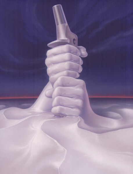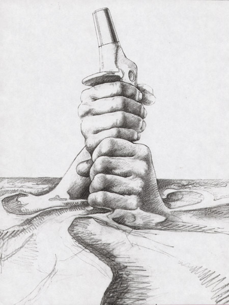 Airbrush Medical Product Illustration dramatising the holding power of bone cement (preliminary sketch shown below)